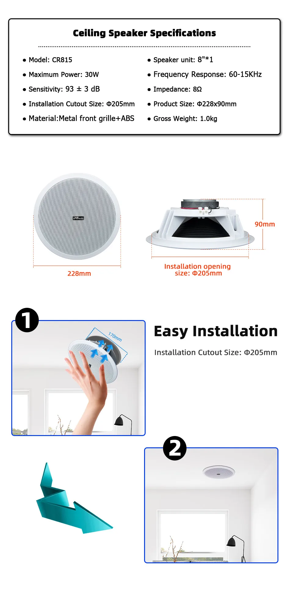 ● One way Bluetooth, the bluetooth of this device can only be connected to mobile phones/tablets and other bluetooth devices who’s Bluetooth function is two way to play and control the music, CAN NOT be connected to the bluetooth ceiling speakers or TV(one way bluetooth) by bluetooth directly.
