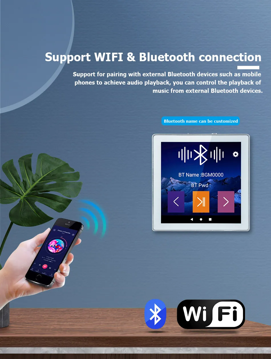 - AMP Audio Source: WiFI, Bluetooth, USB/TF Internet Radio